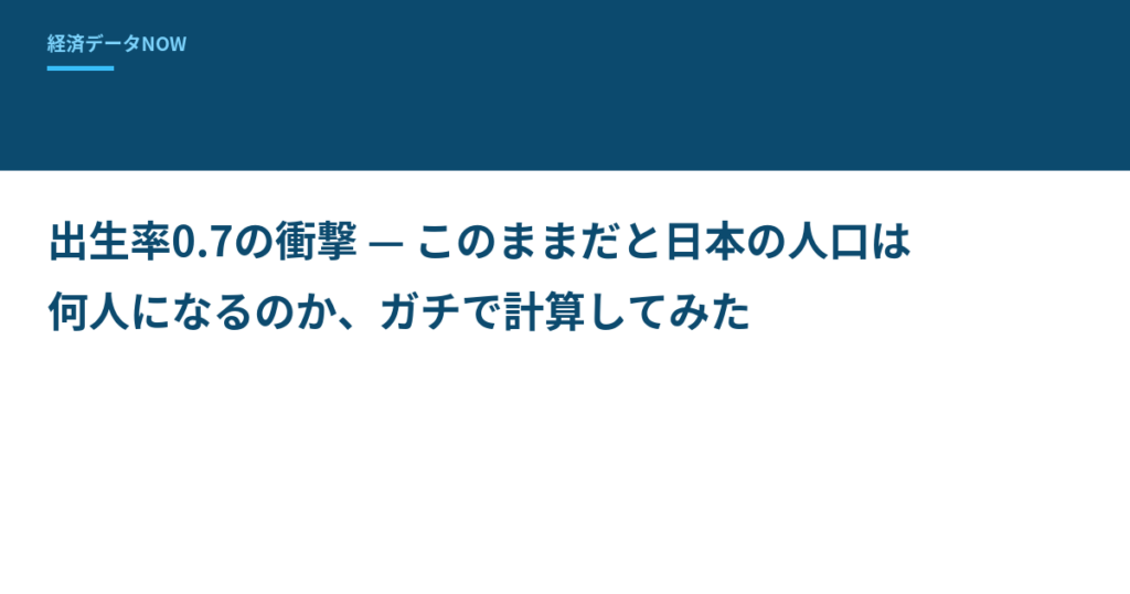2024年、日本の合計特殊出生率は過去最低の1.20を記録した。韓国は0.72、台湾は0.87と、東アジア全体が「超少子化」の波に飲まれている。出生率0.7時代——この数字は何を意味し、社会にどのようなインパクトを与えるのか。本記事では、人口統計データを多角的に分析し、少子化の構造的要因と、そこにわずかに残された希望の光を探る。