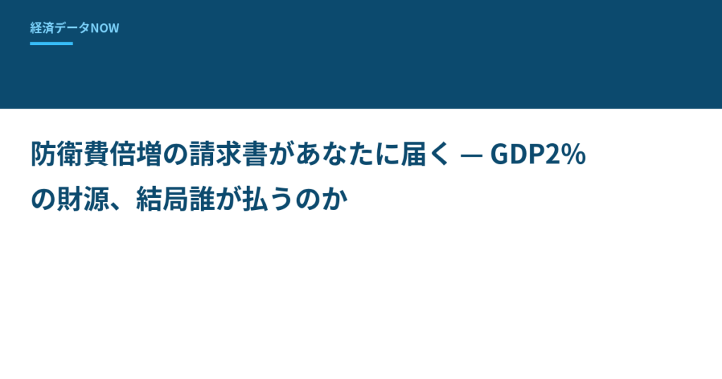 本記事では、防衛費倍増の財源問題、産業への波及効果、マクロ経済への影響を、データに基づいて分析する。防衛政策の是非は読者の判断に委ね、ここでは純粋に経済データの分析に徹する。