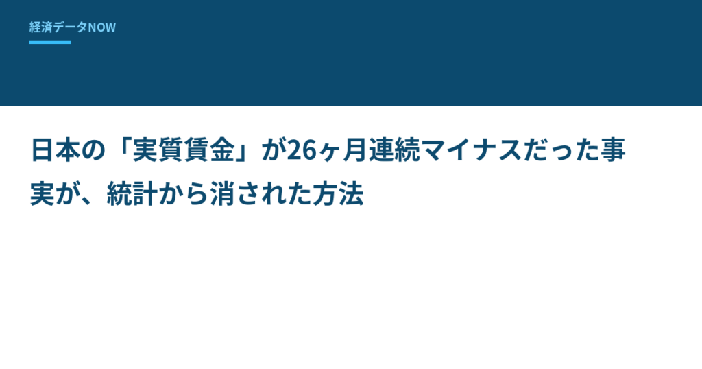 2023年から2025年にかけて、日本の実質賃金は歴史的な長期マイナスを記録した。しかし、政府発表の統計を注意深く読むと、この事実が巧妙に目立たなくされていることに気づく。